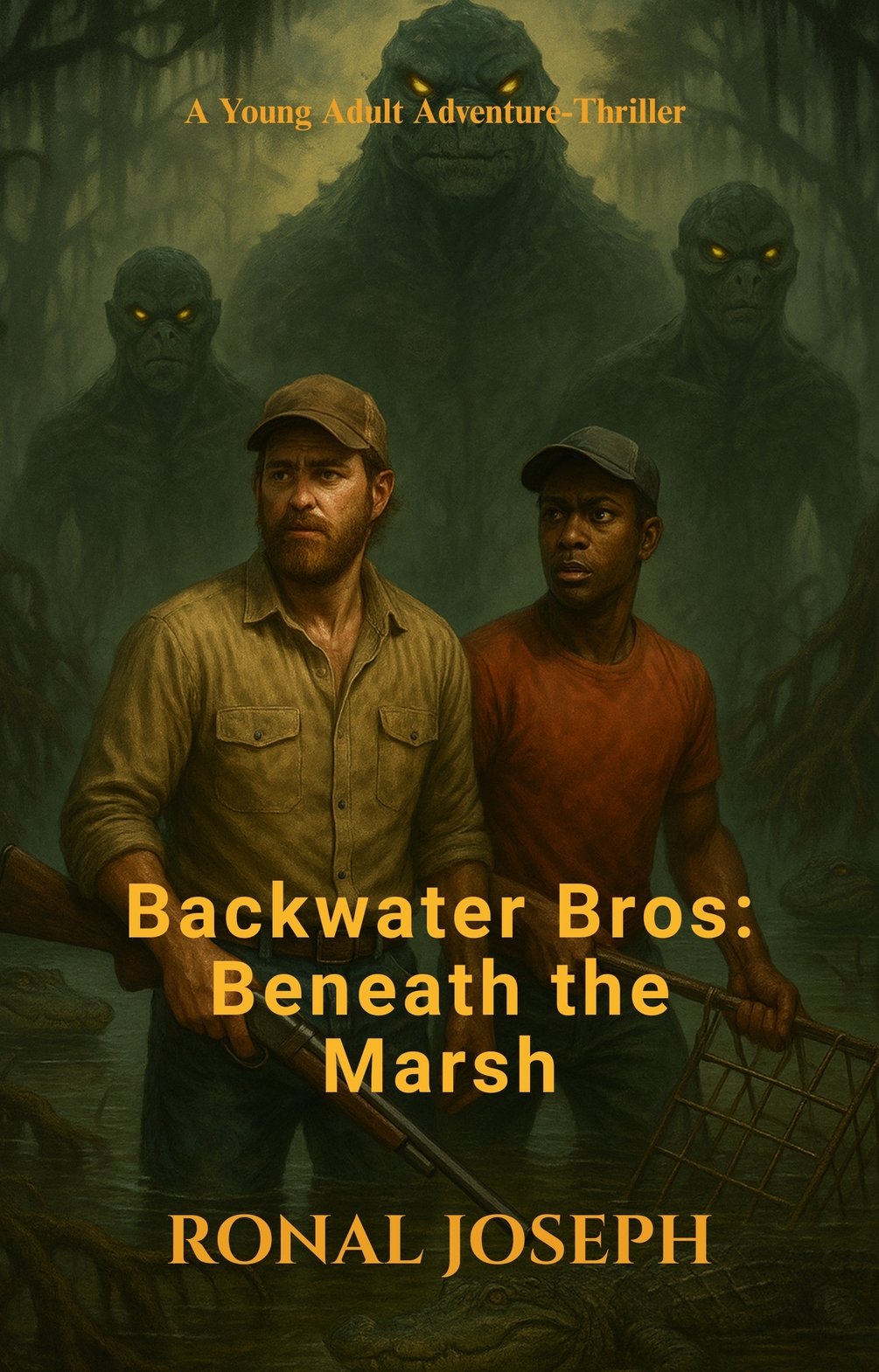 Backwater Bros Trilogy Starter Pack $9.99 | PDF Download Two full swamp-monster novels + an exclusive first-look preview of Book 3 — everything you need to dive head-first into the wildest, grittiest, most action-packed cryptid-hunting series on the indie scene. Book 1: Beneath the Marsh (complete novel) Bubba Jo (bearded white redneck with a shotgun) and Trone (no-nonsense Black swamp guide) take on smugglers, moonshiners, and the legendary twenty-foot Reptillian species. Bullets fly, boats explode, and the swamp itself fights back. Book 2: Swarm of the Bog (complete novel) A rogue scientist unleashes a plague of mutant, man-sized mosquitoes on Pine Hollow. The brothers go full guerrilla warfare with flamethrowers, dynamite, and pure backwoods stubbornness to keep the town from becoming an all-you-can-eat buffet. Book 3: The Legend of the living Giant– Exclusive Preview (first chapters, only available here) The boys leave the bayou behind and head to Africa chasing rumors of Mokèlé-mbèmbé, the last living dinosaur. Trophy hunters, black-ops mercenaries, and something ancient in the water want them gone… permanently. If you love cryptids, over-the-top action, brotherly banter, and monsters that actually feel dangerous, this is your ticket to the swamp. Grab the Trilogy Starter Pack now and lock in the lowest price you’ll ever see for these books. When Book 3 drops, the price goes up. riddlesandrealms.com | Written & narrated by Ronal Joseph
